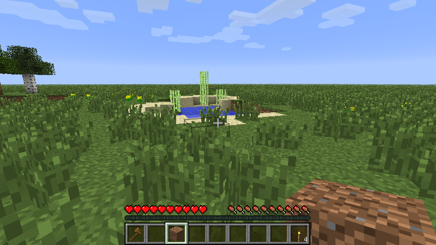 まずはスポーン地点の地面を掘ってマーキングしつつ、周辺の状態を確認。