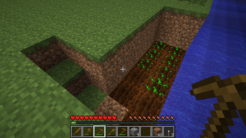 周りに生えまくってる草から種がとれたので、家の東側の水辺に畑をつくろう!(・∀・)