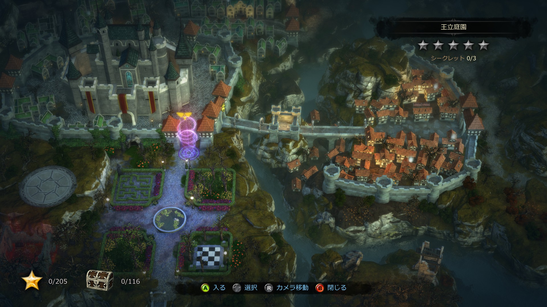 城の中央にある地図でAボタンを押すと下の画面になり、ステージを選択できます。