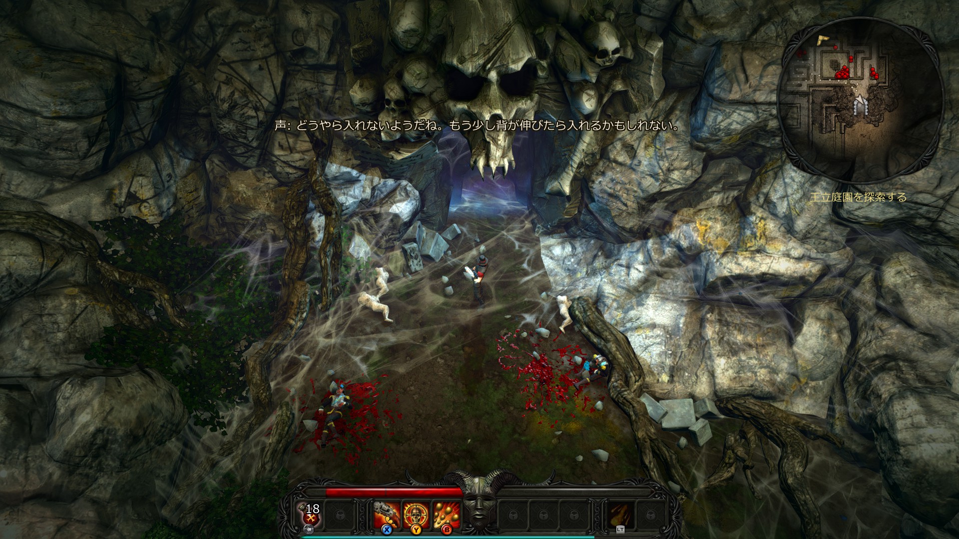 ステージはそこら中蜘蛛とガイコツだらけで、じっとしてるとすぐに囲まれてしまいます。