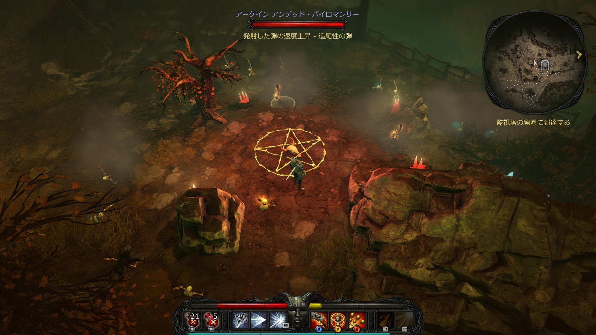 倒すと小さな火の玉3つに分裂します。こいつらは時間が経つとVictorに向かって降ってきてまた地面に火をつけてくるので、速やかに倒してしまったほうがいいです。