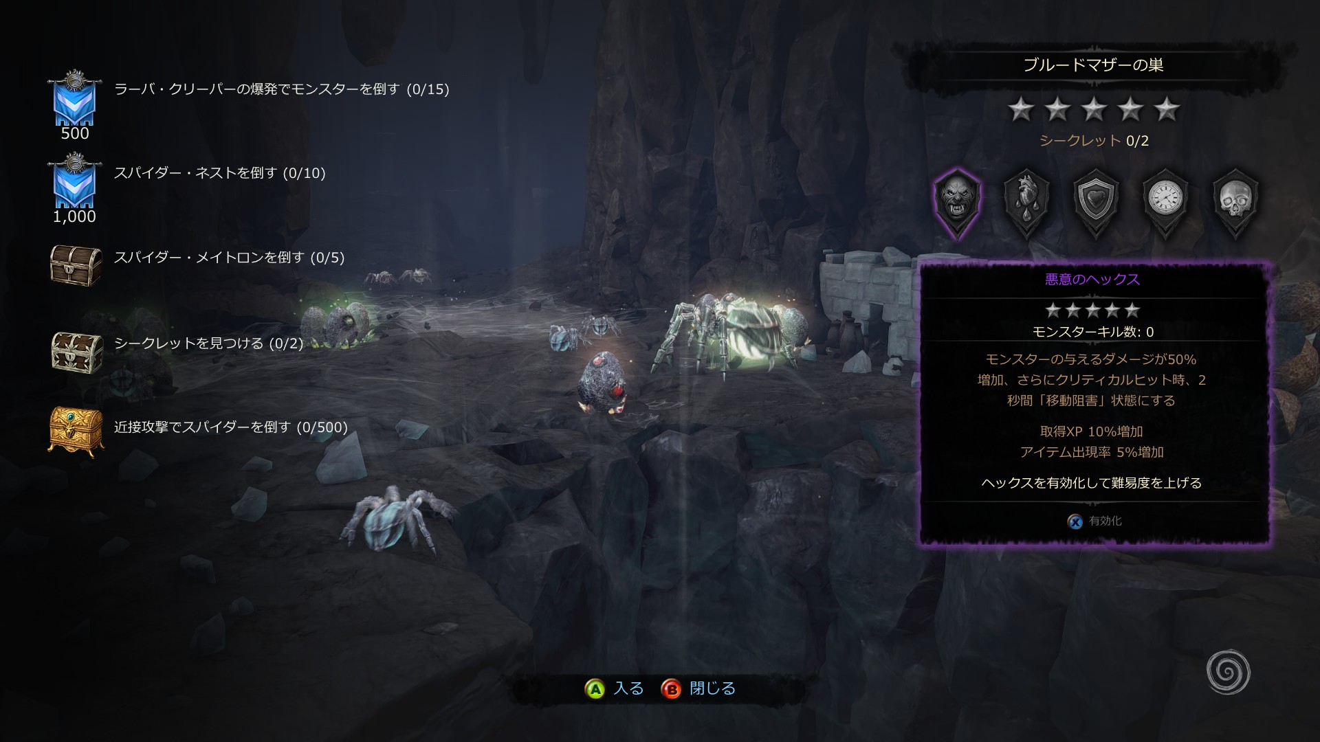 武器はチャレンジを考慮して近接武器ならなんでも良いと思いますが、ラーバ・クリーパー(死ぬと爆発するオレンジの蜘蛛)がたくさん出てくるので、ハンマーは少し危ないかな?