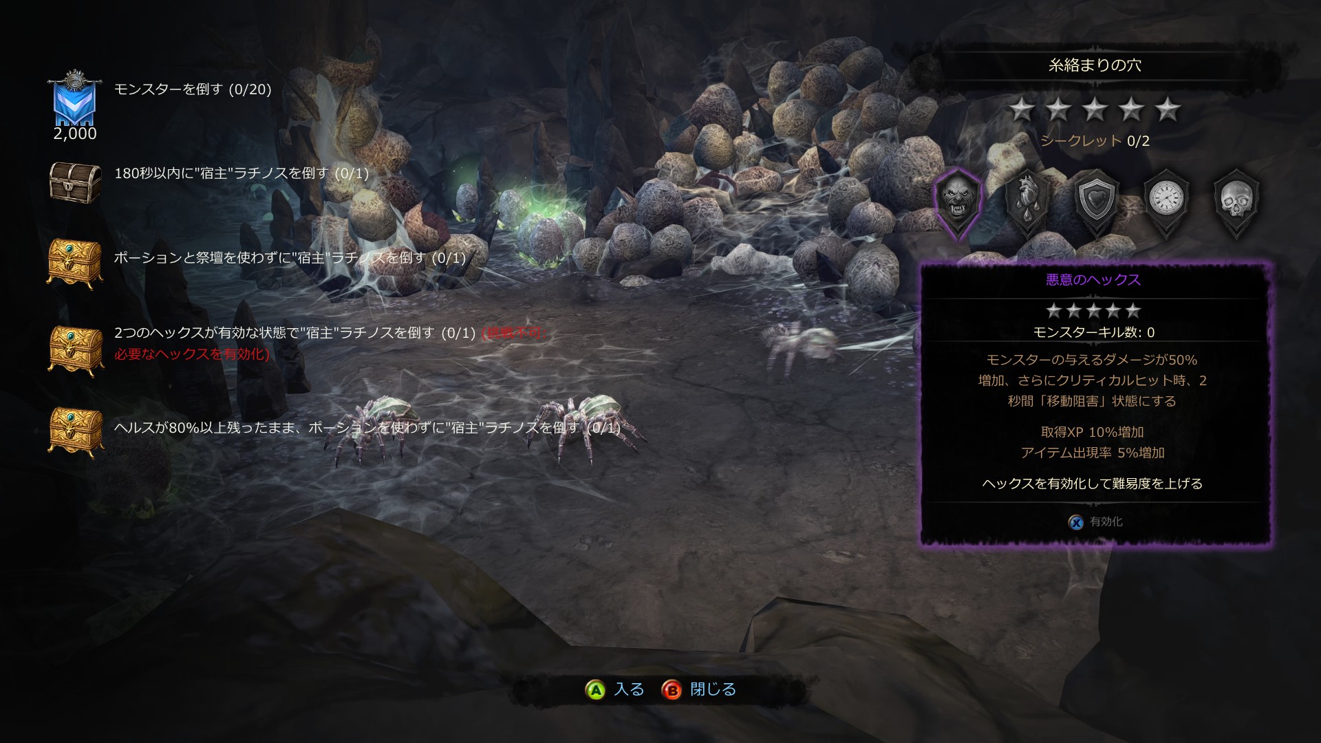 今回挑むのは『糸絡まりの穴』です。名前からして蜘蛛が多そうw