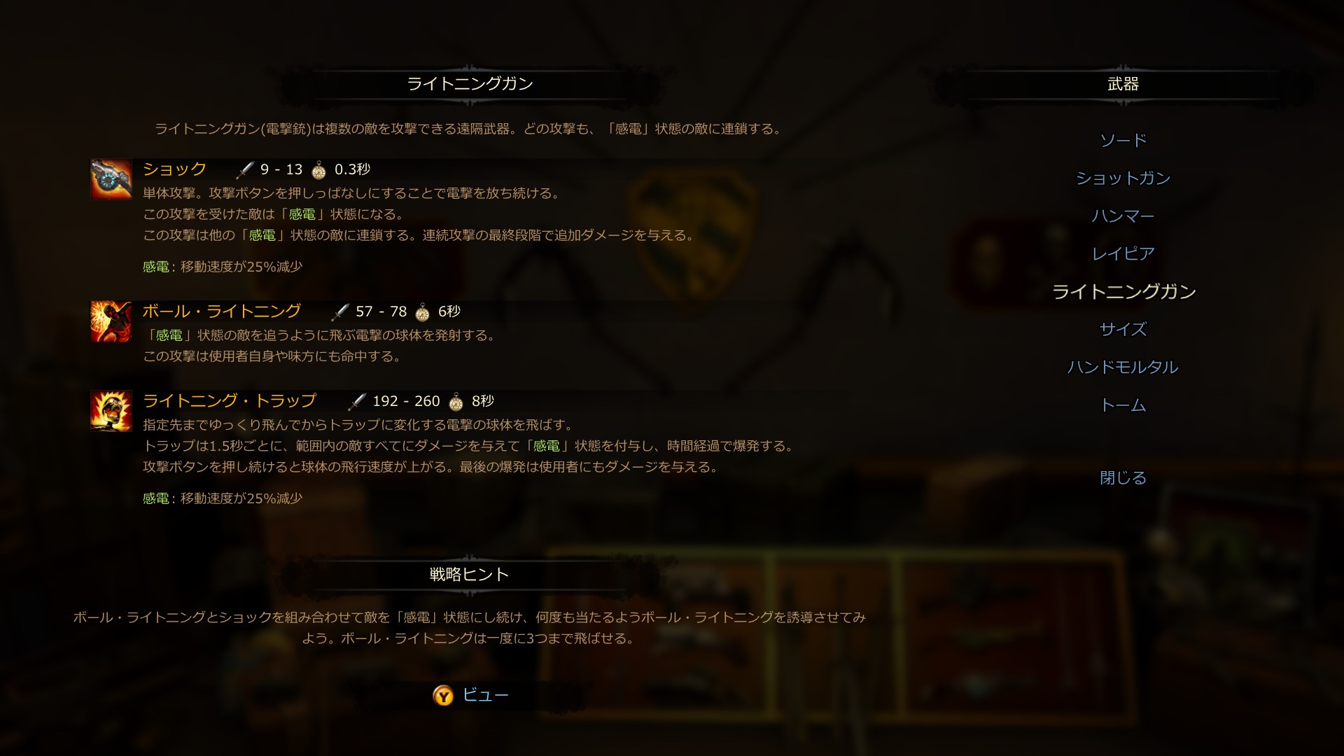 とにかく「感電」を意識した武器。