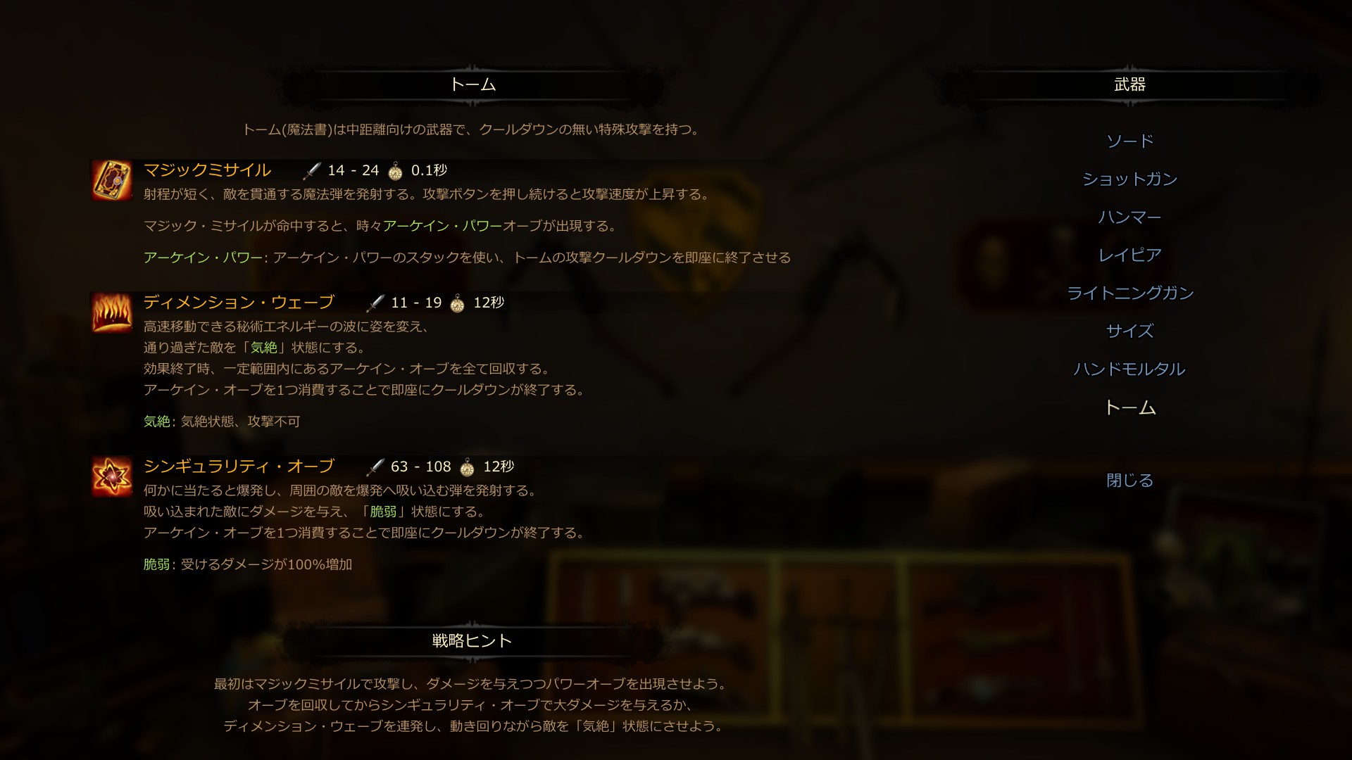 ミサイルで敵を攻撃するしてると、アーケイン・オーブというアイテム?が手に入ります。これが重要。